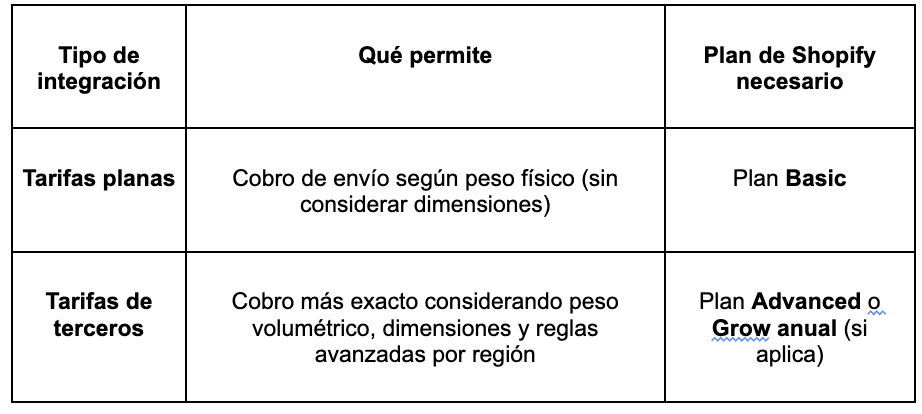 Si tu plan no incluye tarifas de terceros, considera actualizar tu plan o consultar con Shopify.